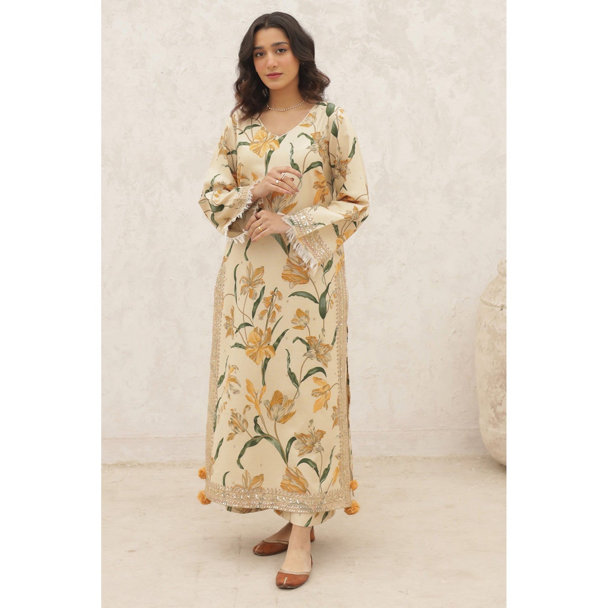 Elevate your style with the Digital Elegance Suit, crafted from Premium Lawn fabric for a perfect blend of comfort and sophistication. Featuring a unique digital print with intricate patterns and vibrant colors, this suit is designed to make a statement. The shirt is adorned with elegant embroidered lace on the daman, chalk, and sleeves, enhancing its refined appeal. Ideal for festive events, parties, or casual outings, this ensemble ensures a bold yet graceful look.